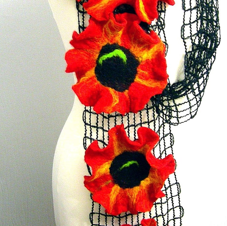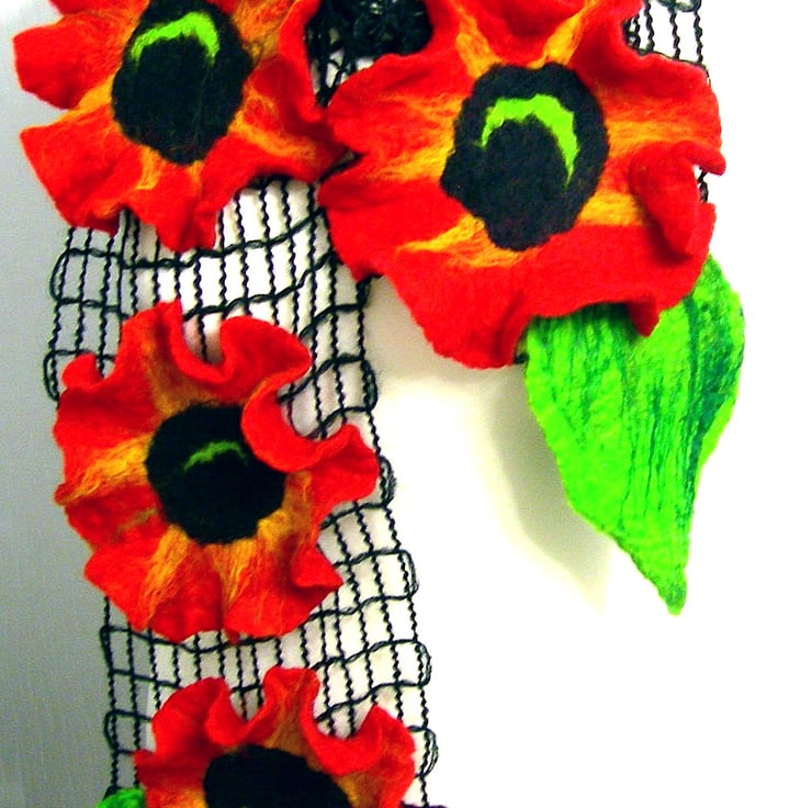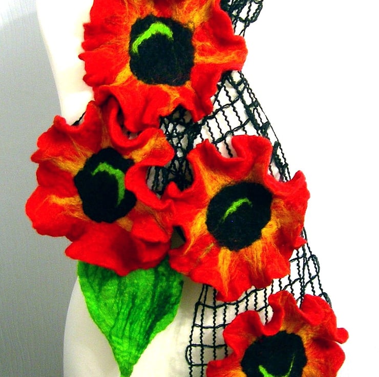 SALE... Hand Felted, Wool Jewelry FELTED necklace scarf -100% WOOL MERINO