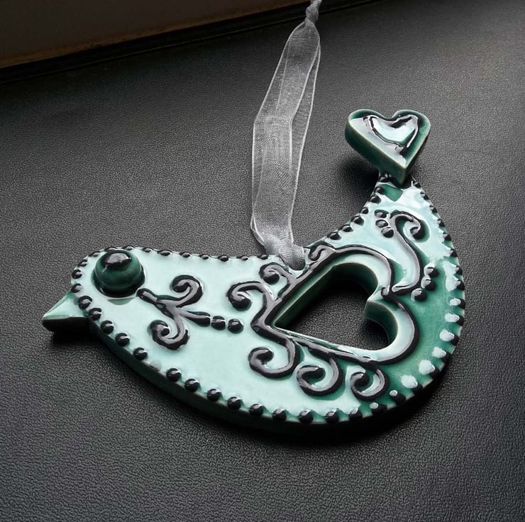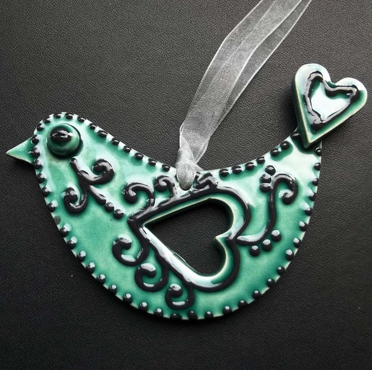 It has then been glazed with a lovely glossy bluey/ green colour and fired again to 1100 degrees.