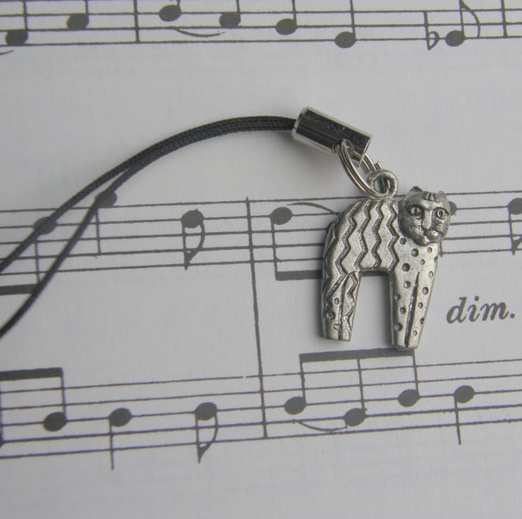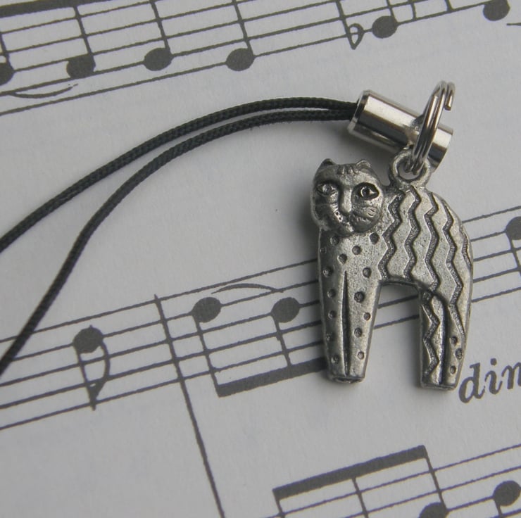 Metal Cat Charm to hang from your phone, handbag or purse zip.