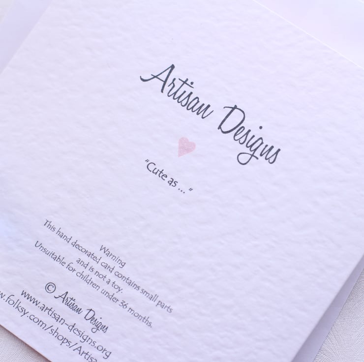 We lovingly design and individually handcraft each greetings card from start to finish, using our own illustrations and photographs. All of our embellishments are designed and carefully handcrafted from scratch too and are unique to us, so there may be slight variations between embellishments of the same design, making each one unique!