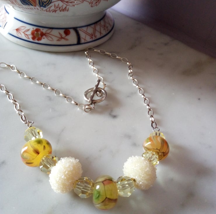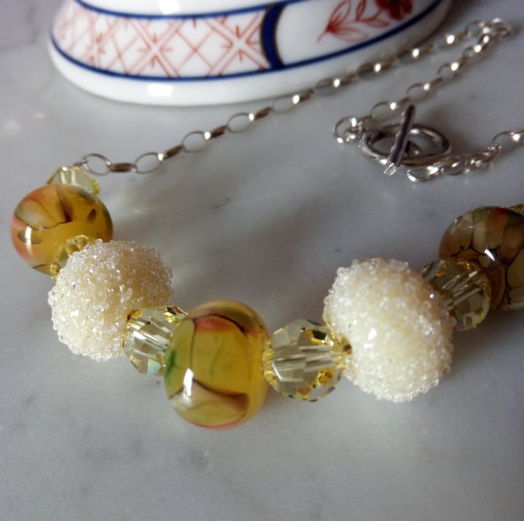 SALE - HALF PRICE - SUNSHINE SUGAR LAMPWORK NECKLACE - FREE UK SHIPPING