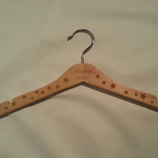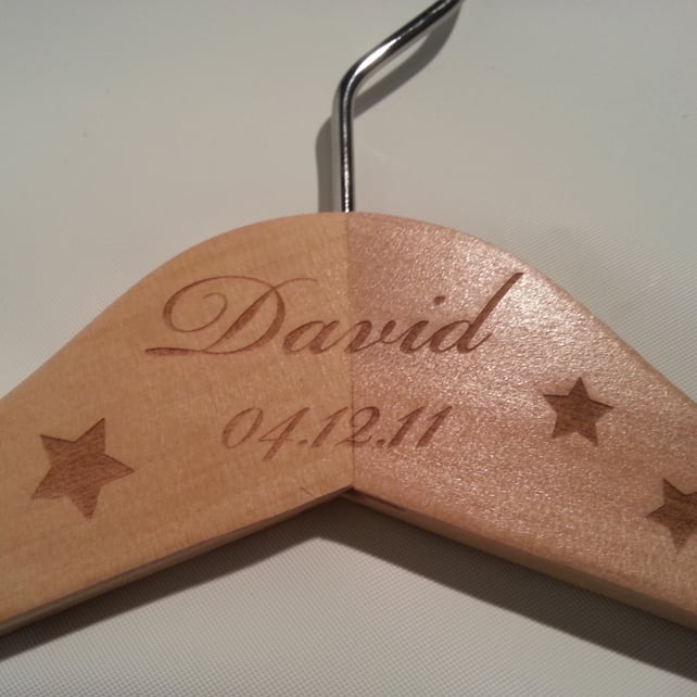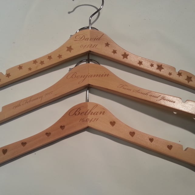 Choose between the standard heart or star design and then have the babies name and birth date engraved onto the hanger.