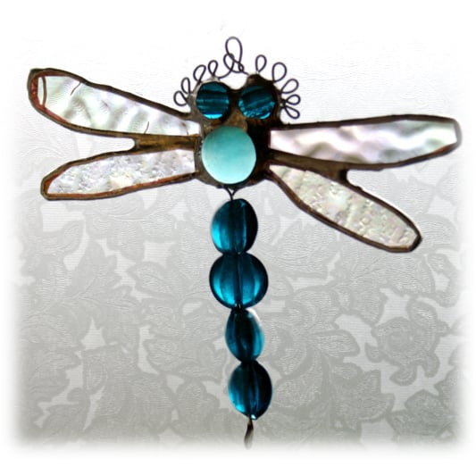 The 5th picture is of the pink dragonfly I sold previously so you can see that each is unique though made to the same design.