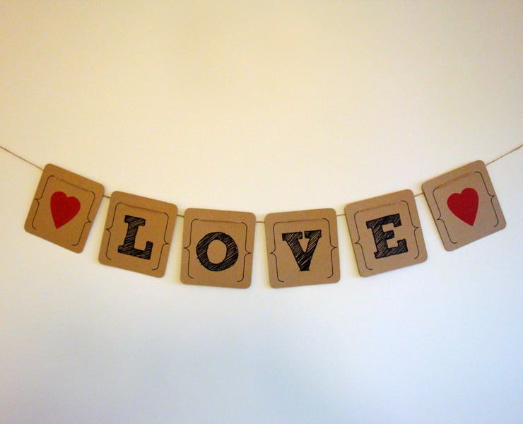 A gorgeous hand made ‘LOVE’ garland/banner, just perfect to hang up at your wedding!