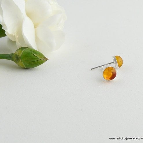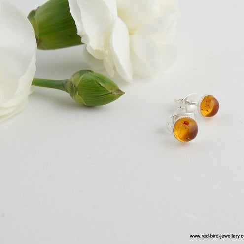 These little (5mm) amber stones are set in a sterling silver setting, with sterling silver earposts.