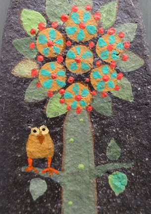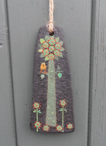 Ceramic wall hanging with a LittLe TrEE with an Owl perched on a branch.