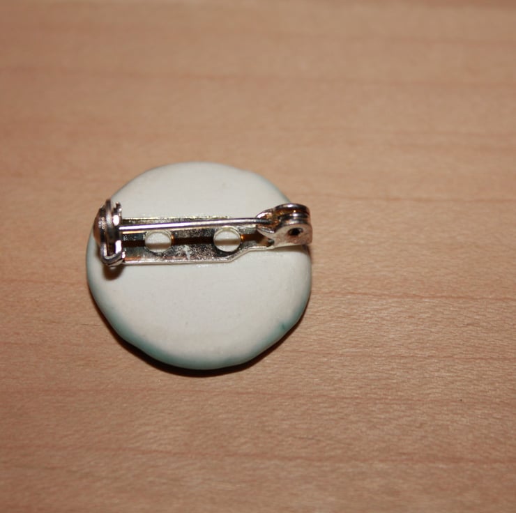 Not glazed on the back, brooch pin on back.