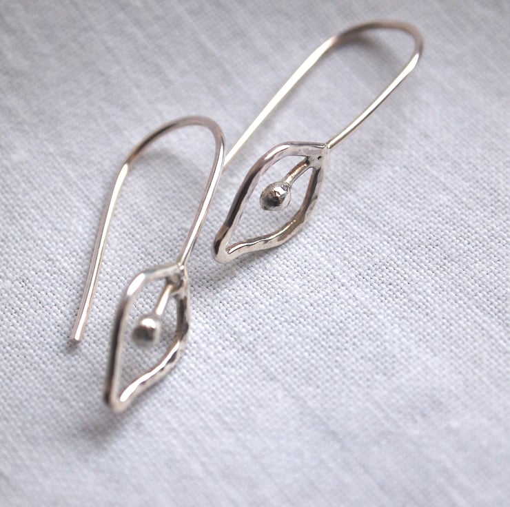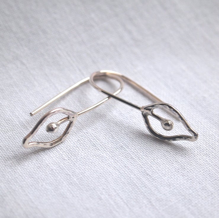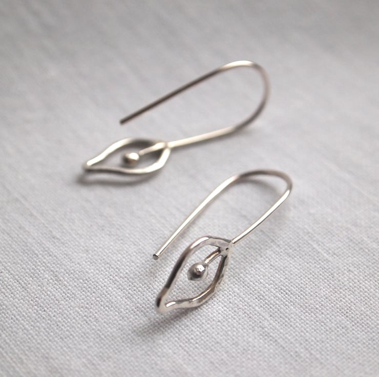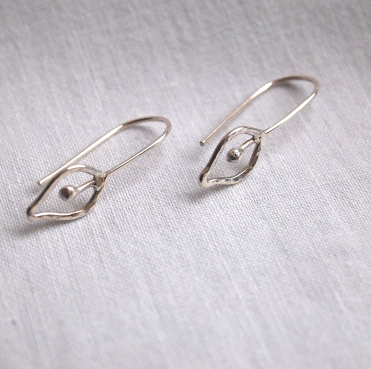 These dainty little drop leaf earrings have been handmade from sterling silver and lightly hammered to add texture and shine. A very comfortable style, they make a great little everyday pair of earrings.