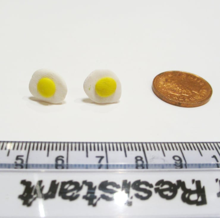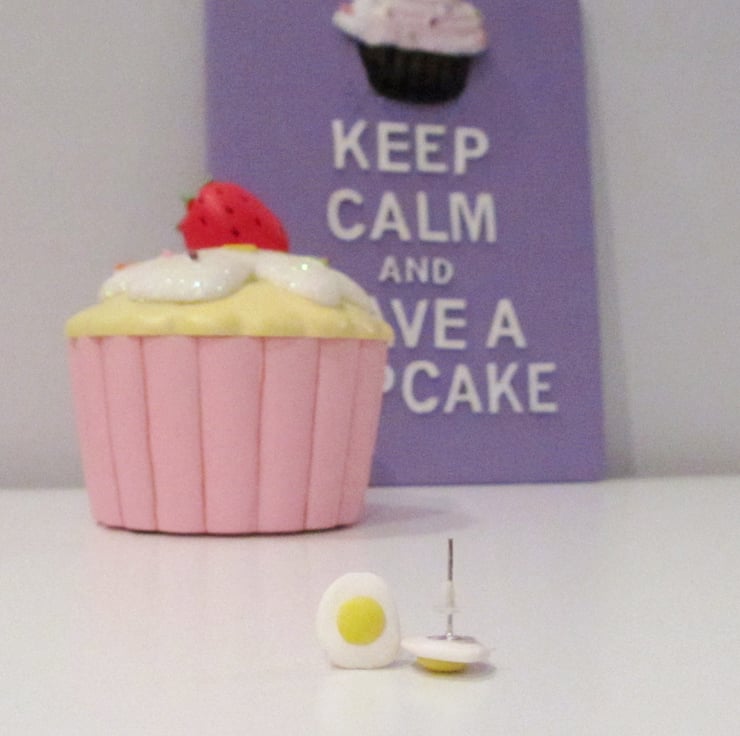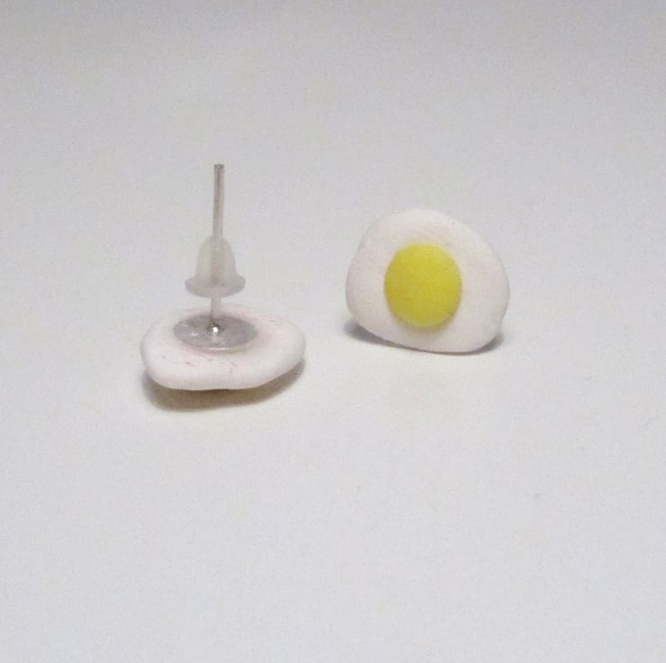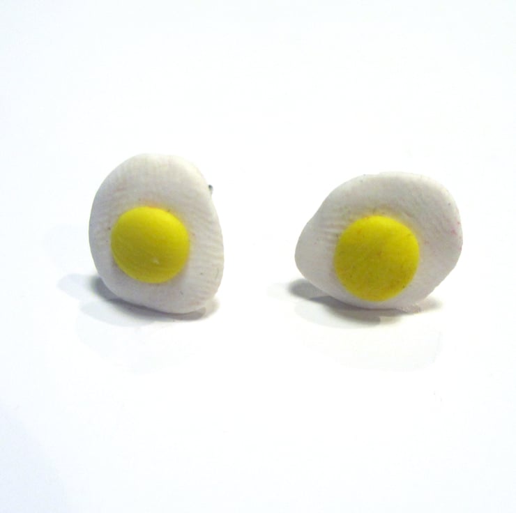 A fresh looking pair of yellow and white fried egg sweets stud earrings!! With authentic bright yellow yolk!