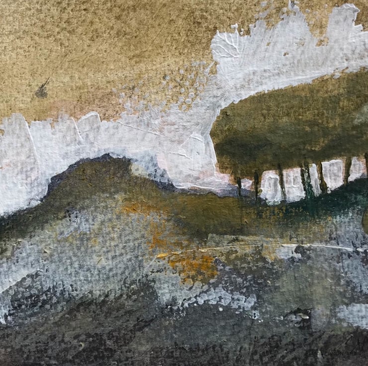 This is an original landscape painting of a rocky outcrop and trees in an upland landscape, featuring lovely earthy colours. Inspired by my walks around the Peak Park in Derbyshire and South West Sheffield, UK, this would make a great gift for someone who likes rambling and exploring wild places.