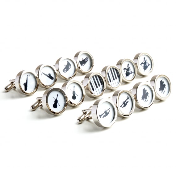 Trumpet cufflinks pictured with a black instrument silhouetted on a white background. These cufflinks also look great in white with a black background.