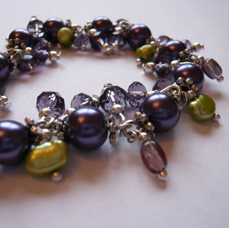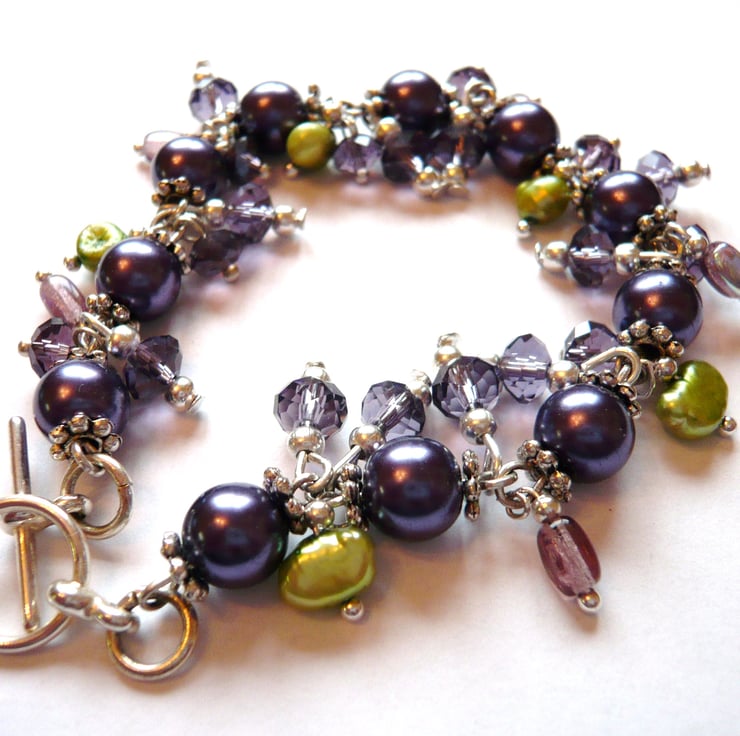 This is a bracelet that I had already made but I fancied revamping it !!! I have added some small lime green natural sea pearl beads to add a hint of colour and some small lavender iriedescent beads to add a bit of sparkle. I now think it looks quite stunning and have thought about keeping it for myself !!! The bracelet measures approx 20cm (8") including the toggle clasps