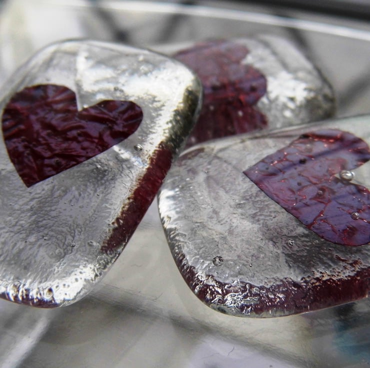these fused glass hearts are perfect for wedding favours