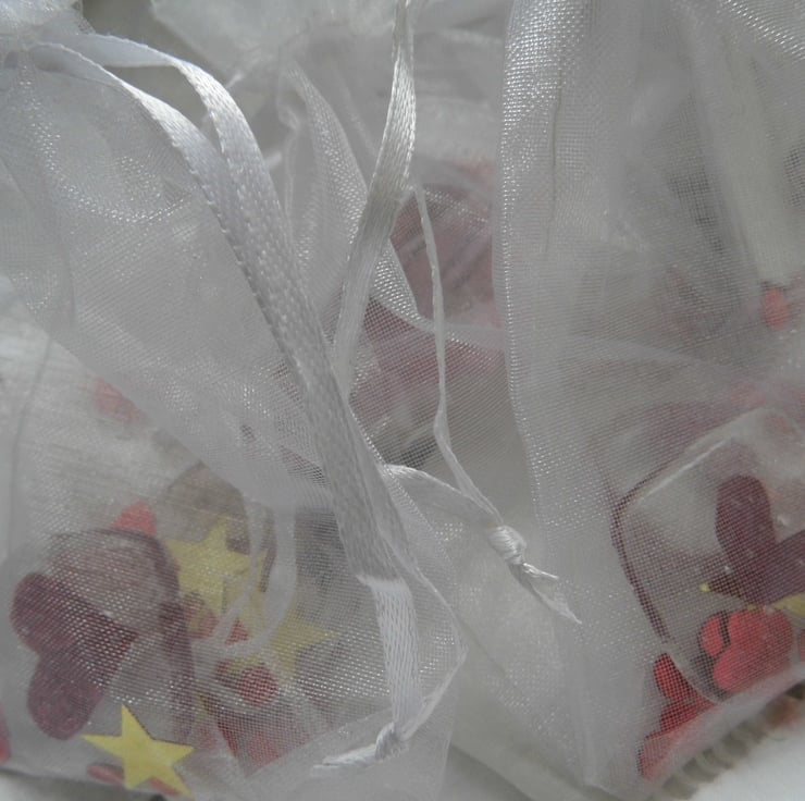 each heart will come in an organza bag with a sprinkling of hearts which can be colour co ordinated to your wedding