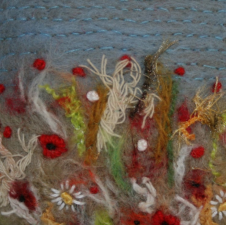 One of a series of embroidered and felted items - each design unique in composition.