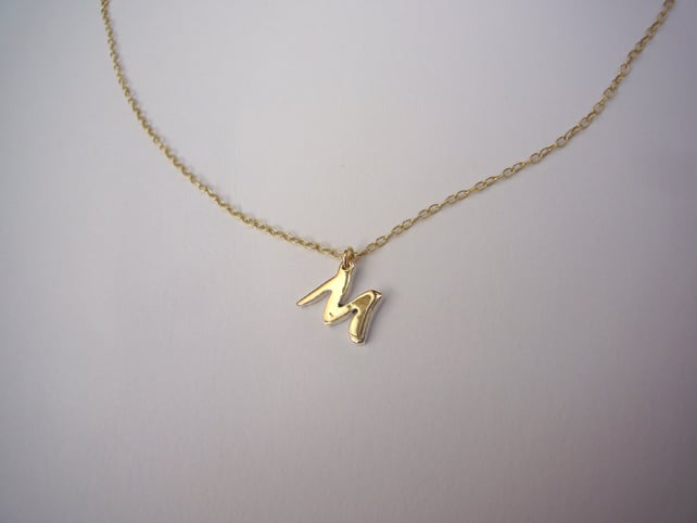 This gold necklace would make a gorgeous gift for someone close or for yourself. With the chain, jump rings and bolt ring all made from 9ct gold, in order to make this letter necklace affordable, Mandie solders 9ct gold sheet to 1.3mm thick sterling silver sheet, then cuts the letter by hand. Each necklace is hand made to order; please advise which letter you would like and if you would like a 40cm or 45cm chain.