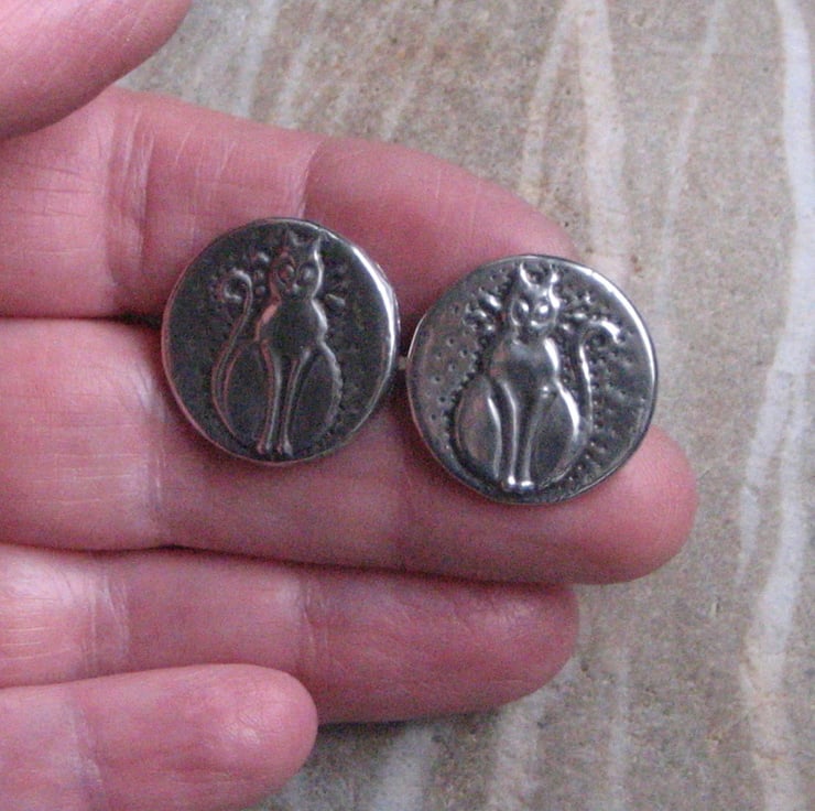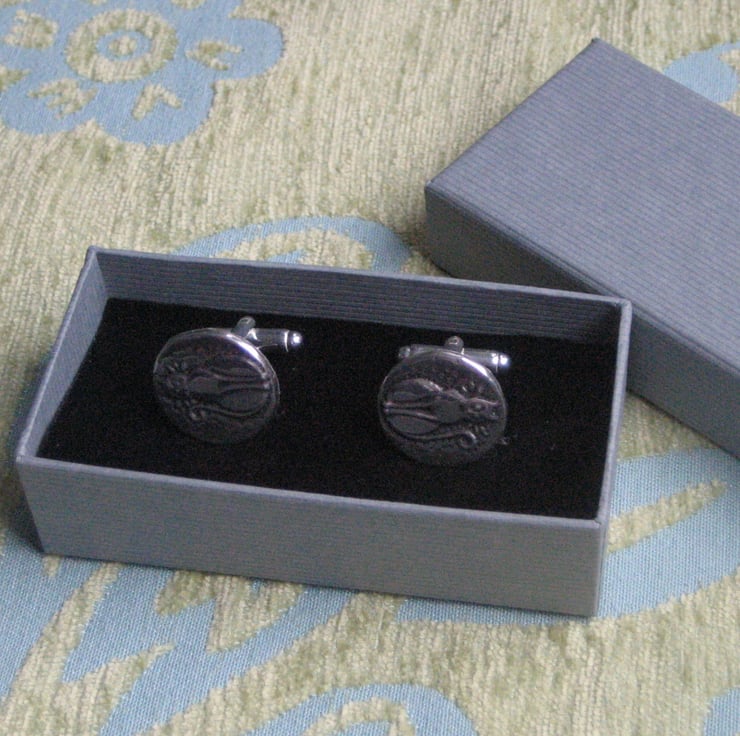 These cufflinks have been individually hand-made in shiny modern pewter. Due to the method of making, the links will vary slightly. Each link measures 2cm, 0.75ins,across. Gift boxed. A great gift for a man for a 10th Wedding Anniversary, Fathers' Day or Birthday.