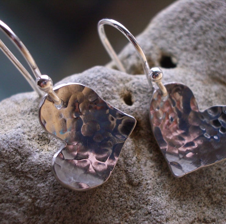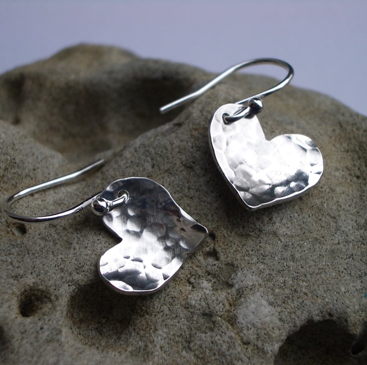 These heart earrings are hand crafted from sterling silver which I have saw pierced and then hammered to achieve this texture. They have been domed a little so that they catch the light. These are popular as wedding jewellery for bridesmaids or brides.