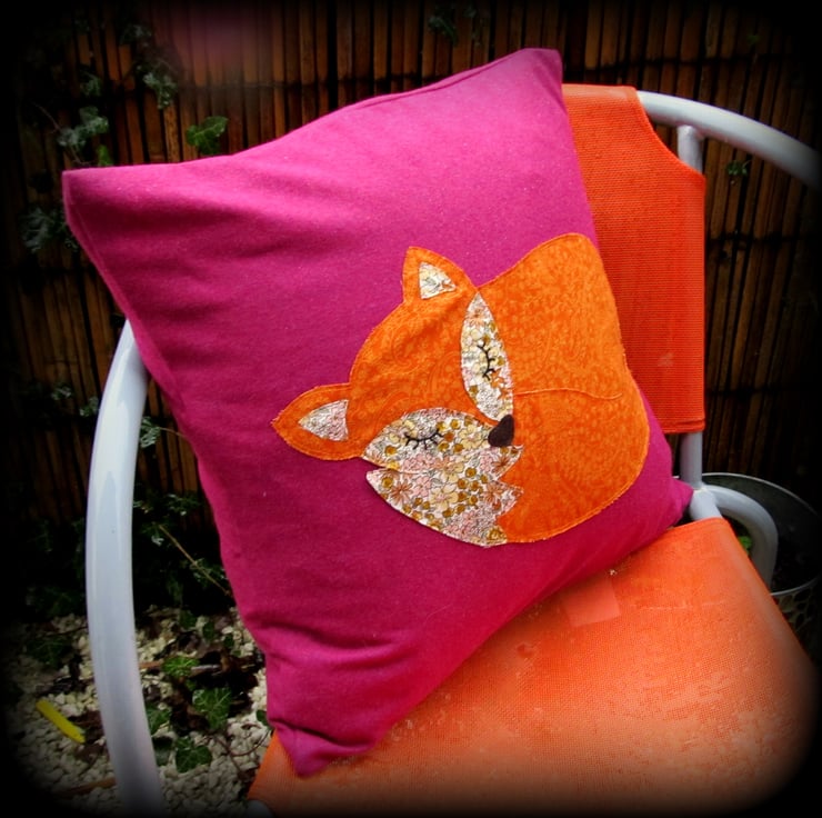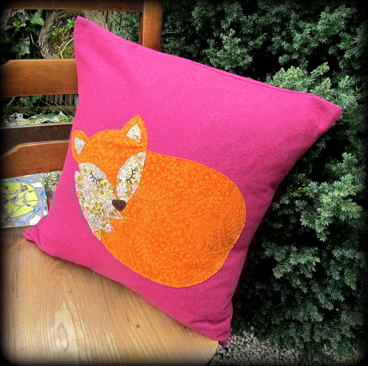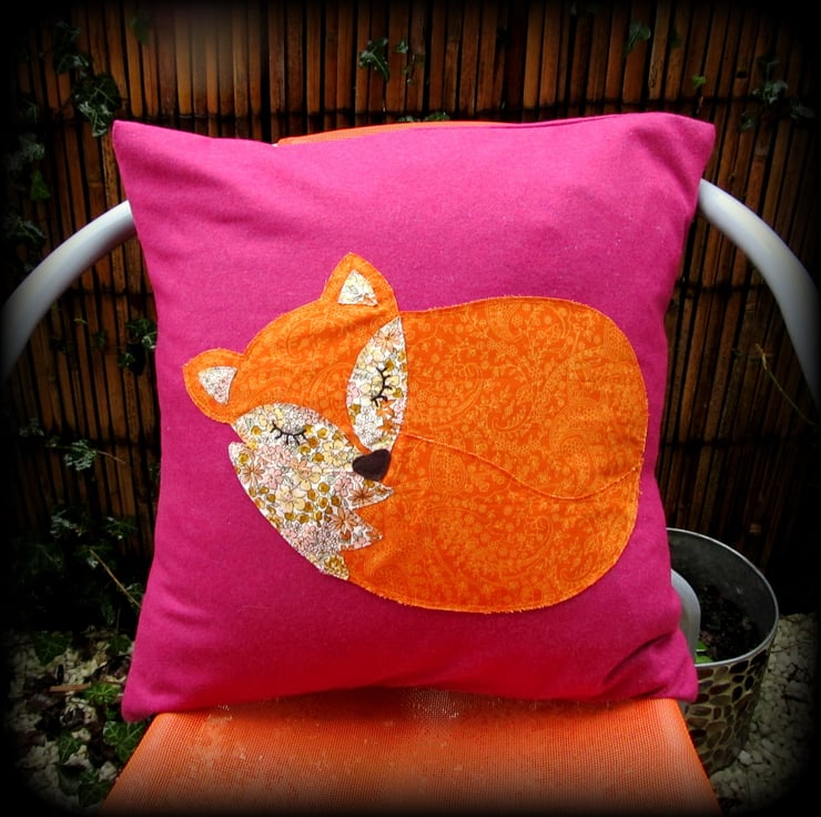 Snoozy fox has been hand appliqued using two contrasting cotton fabrics.