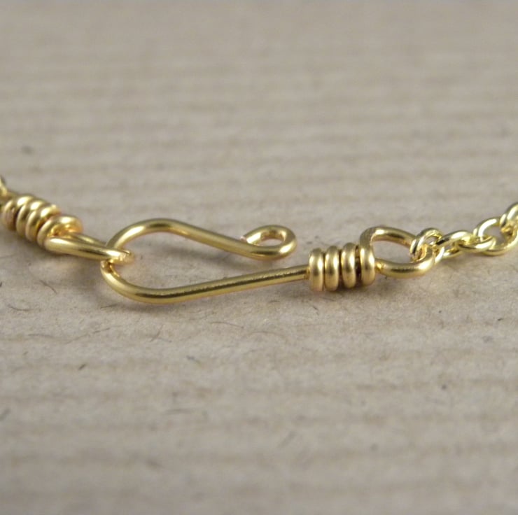 The overall length of the necklace is approximately 19 inches and it is fastened at the back with a handmade Gold Plated clasp.