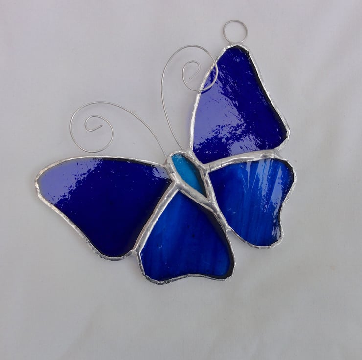 The glass used for this butterfly is cobalt blue restoration glass, blue streaky glass and turquoise glass.
