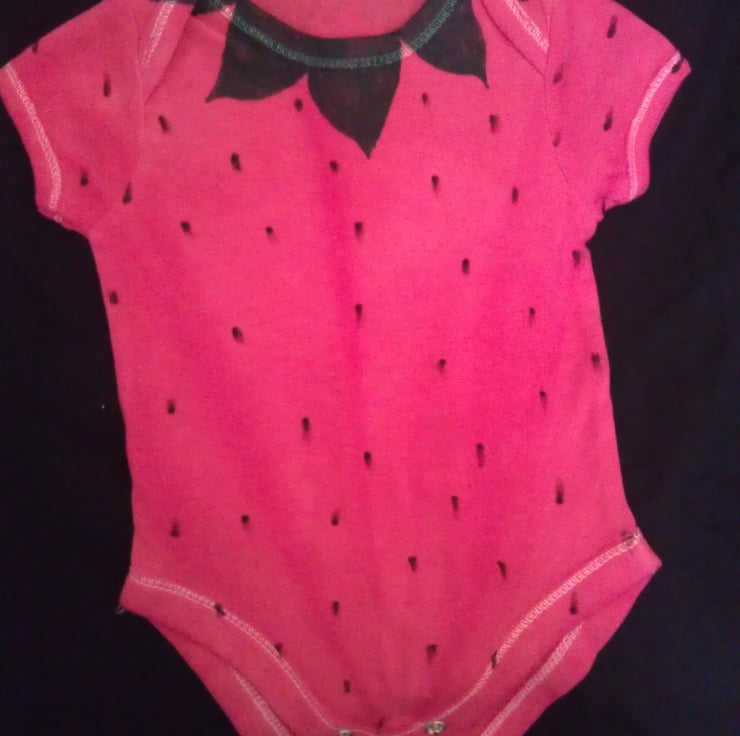 Hand dyed and hand painted vest with strawberry detail. Available in sizes newborn to 1 year