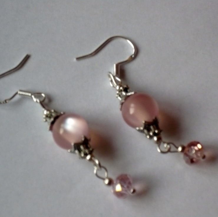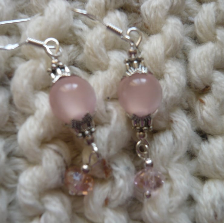 Hi, If you are looking for the perfect gift maybe Mothers Day then here it is. Very feminine and eye catching earrings with a cute little glass rondelle bead dangling from the main piece.