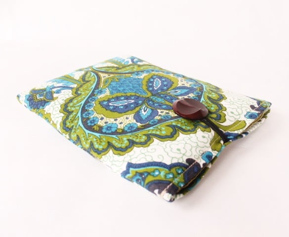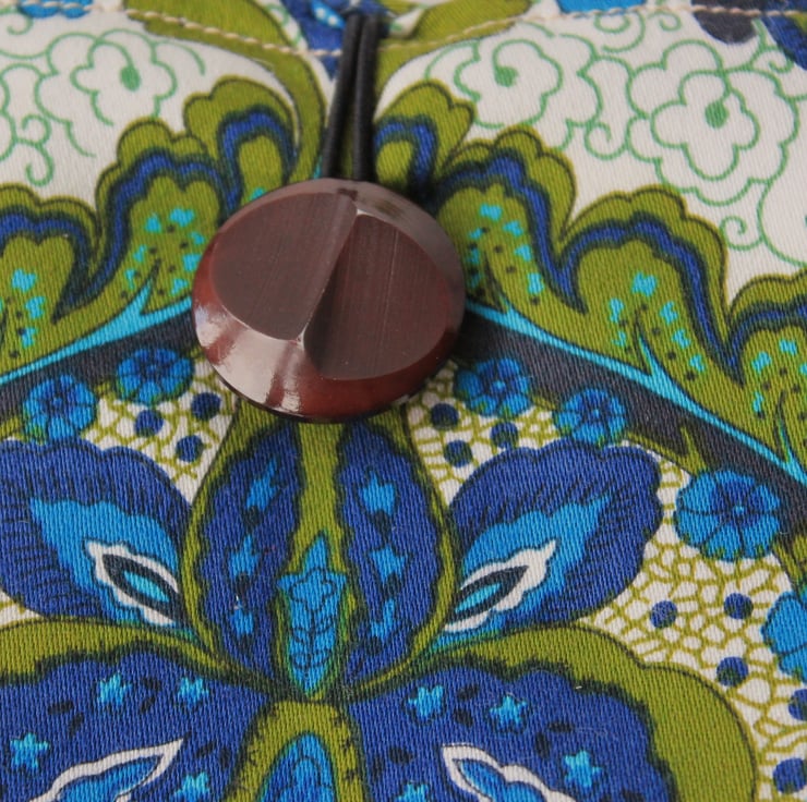 This is a kindle case made using a lovely piece of vintage fabric, dating to the 1970s. It is in very good condition considering it is a vintage piece of material, being made of cotton with a satin finish. It is lined and padded inside for extra protection.