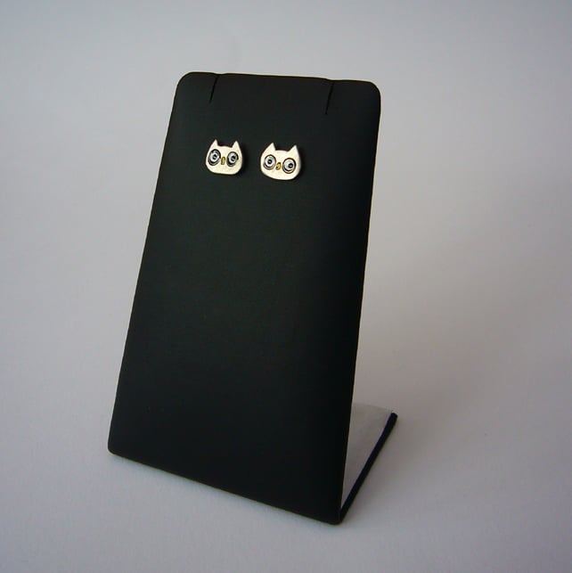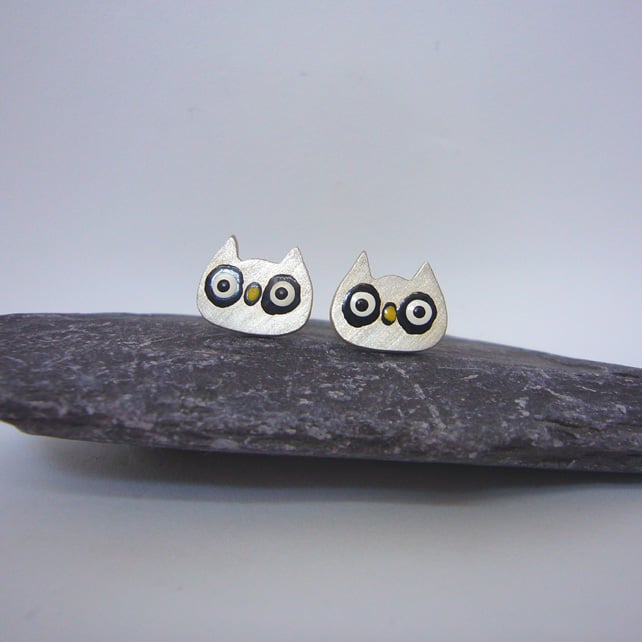 These super cute earrings would make a great gift for a lover of owls. They are part of a range of discontinued animal earrings. I created the earrings by cutting the shapes from 1mm sterling silver and painting the details on using enamel paint. Sterling silver ear posts have been soldered to the back.