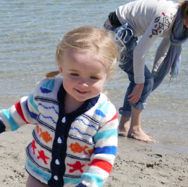 Knitting pattern for a child's jacket with a nautical theme. Perfect for those days by the sea shore.