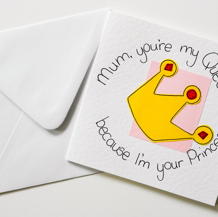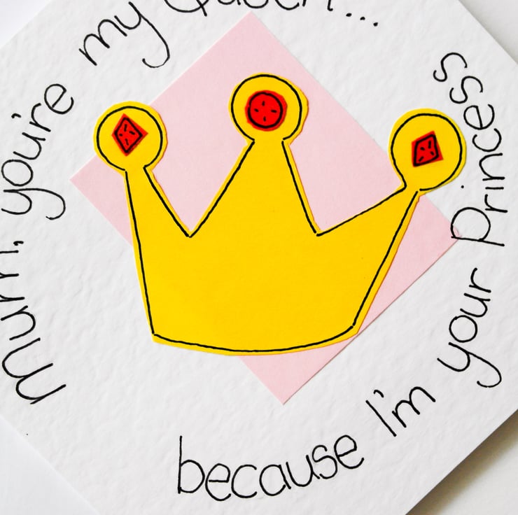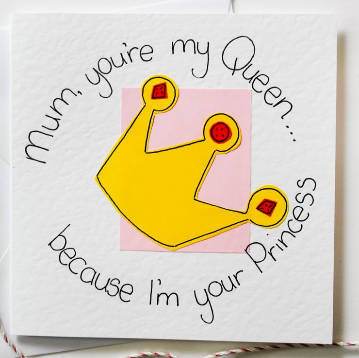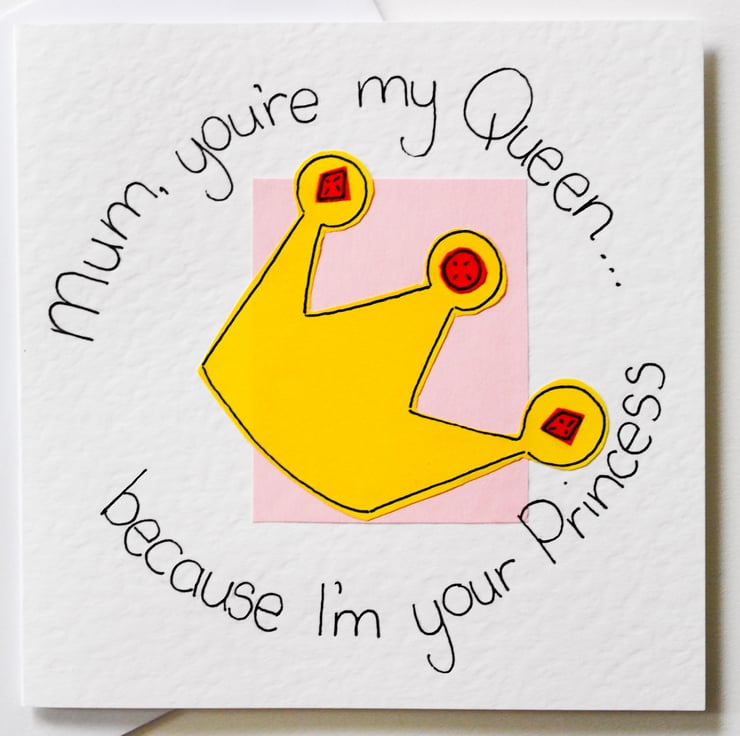 A handmade card to send to your Mum on her special day, be it her birthday, Mother's Day or just to make her feel special.A unique card that tell your Mum how she is your queen because I am your Princess. Show how much you care by sending her this unique handmade card.