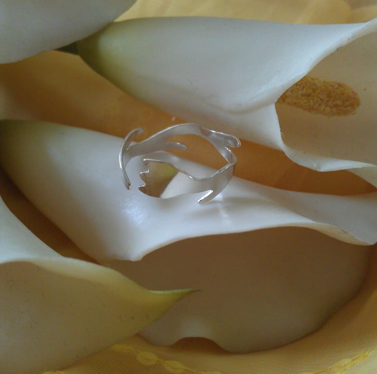 Hand crafted sterling silver adjustable tulip ring. 0.5cm deep comes in a presentation box.