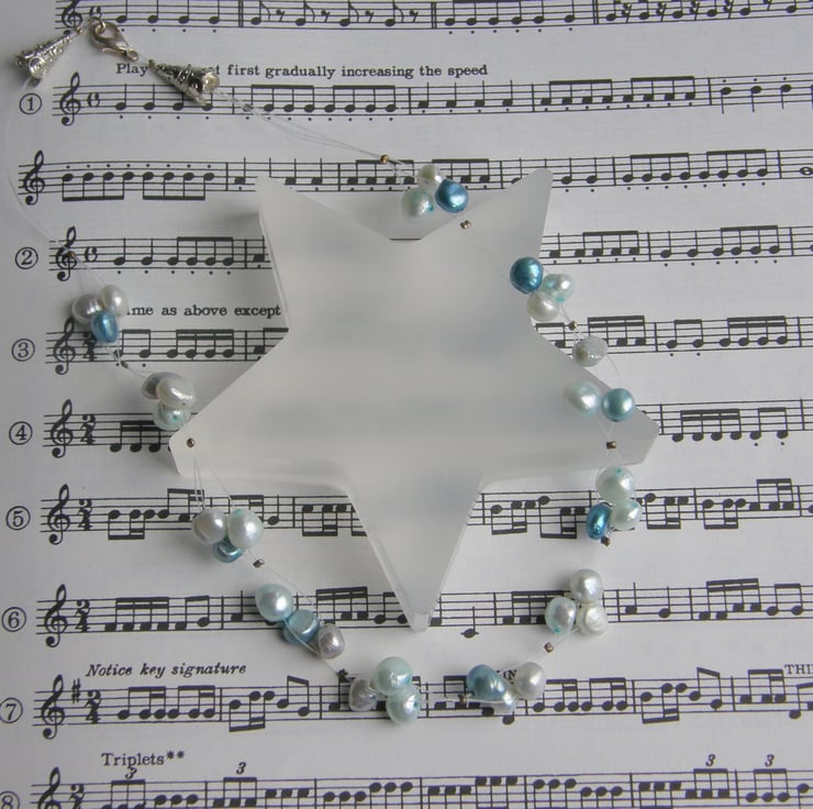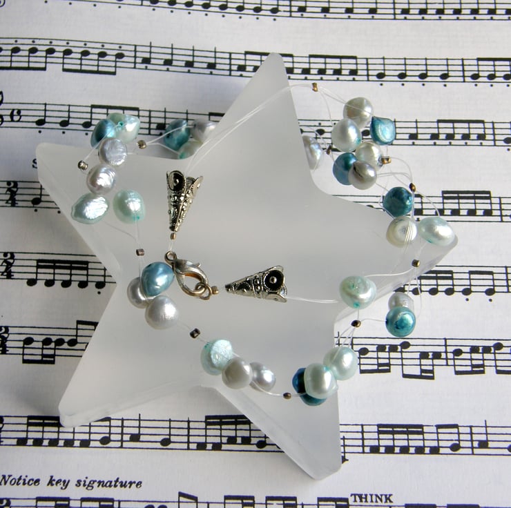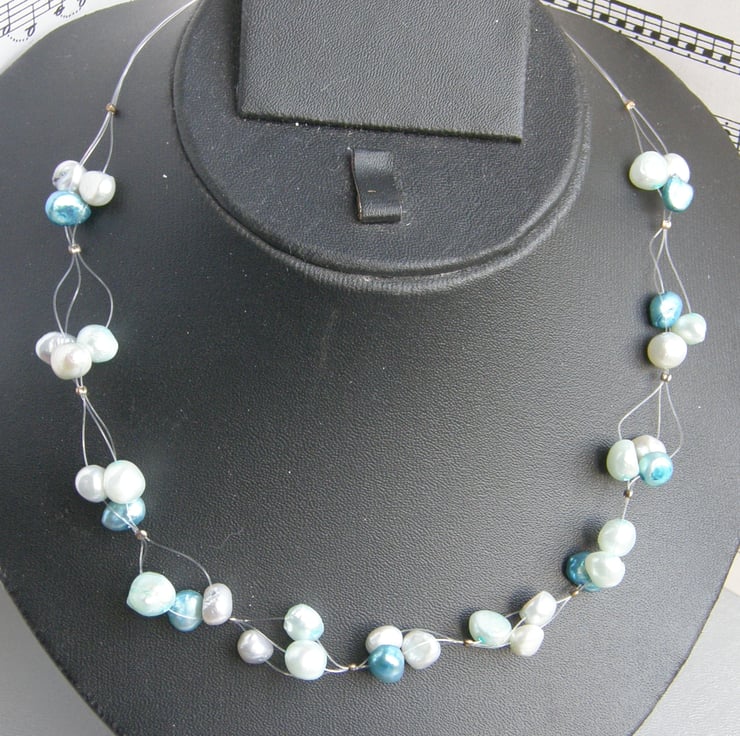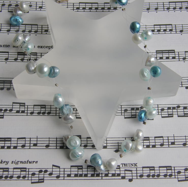 This necklace has 33 stunning freshwater pearls, in shades of summery blue.