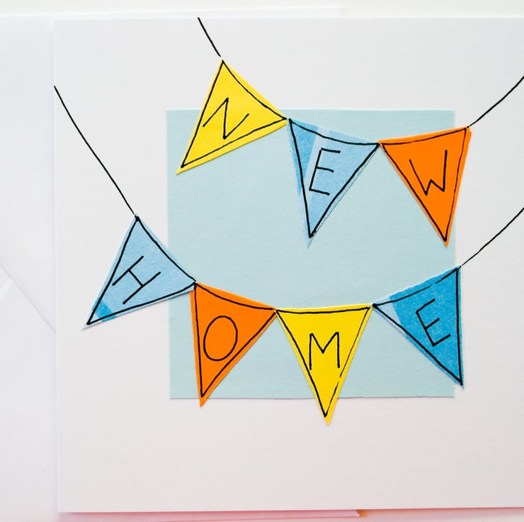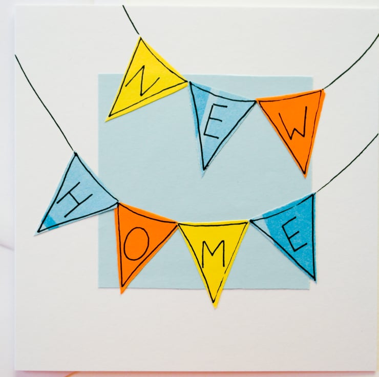 A beautiful Handmade Greeting Card to send to anyone who has just moved into a new home. Suitable for anyone, a unique card to add a splash of colour in a new home.