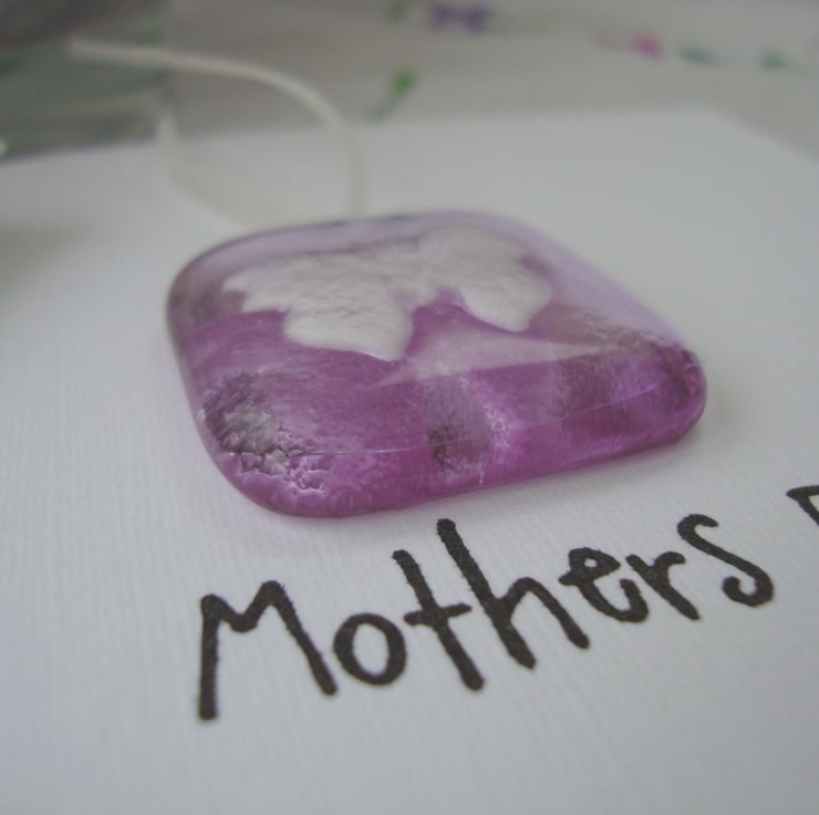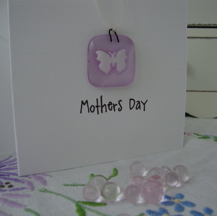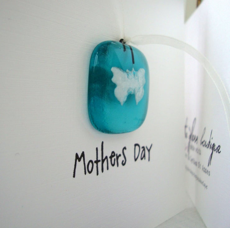 This card has a detachable fused glass hanger which can be kept as a keepsake