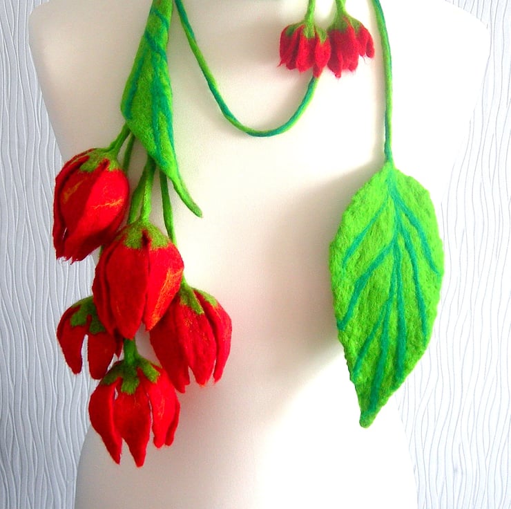 SALE... Hand Felted, Wool Jewelry felted necklace AND EARRINGS-100% WOOL MERINO
