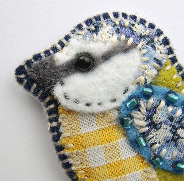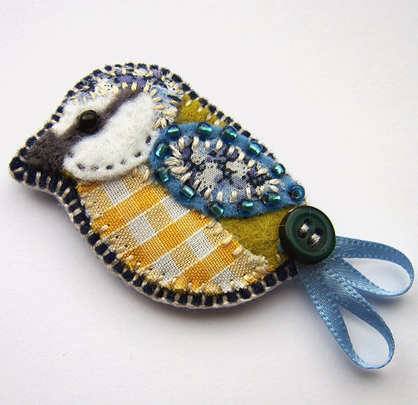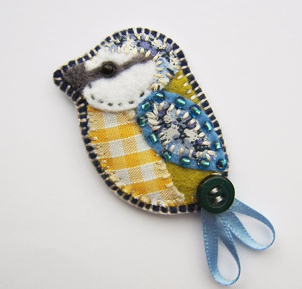keywords: bird brooch, blue tit brooch, pin, badge, felt bird, applique bird, handmade bird, applique blue tit, textile bird, Mothers Day, mothers day gift