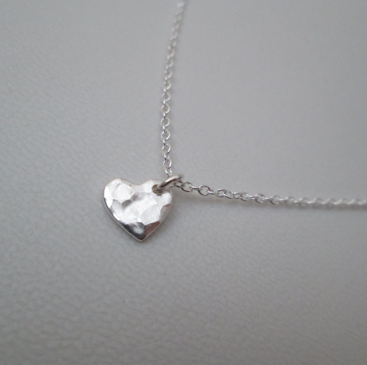 This gorgeous heart has been hammered to give it a unique texture on both sides, suspended from an 18 inch sterling silver chain.