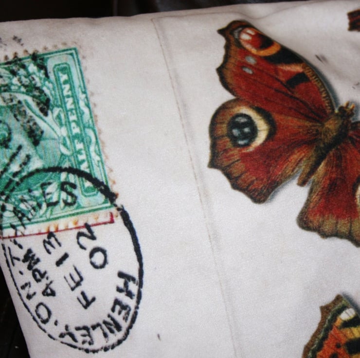 I love to create images from old pictures and turn them into something new. Using photo editing this cover shows vintage illustrations of beautifully coloured butterflies, to the side is a Henley postmark and the word Postcard.