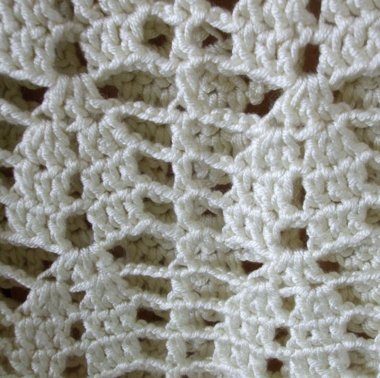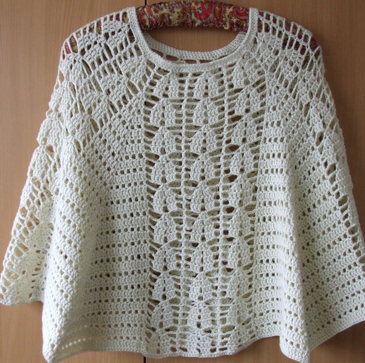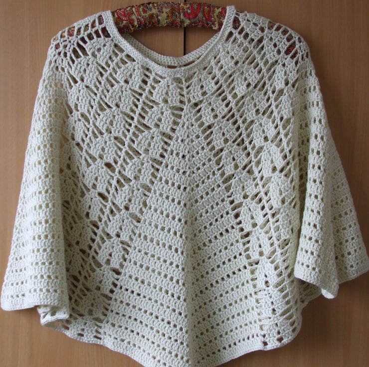 Lacy Poncho hand crocheted in a Cream acrylic yarn by King Cole which is machine washable.