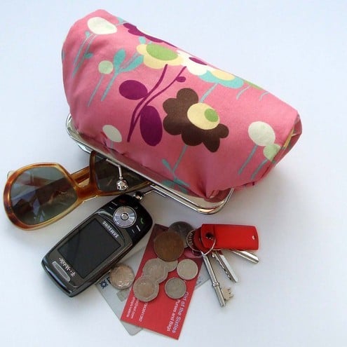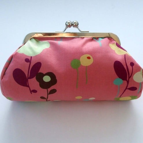 Perfect little clutch for your mobile phone, keys, sunglasses,change and credit cards or even a make-up bag. Pretty Moda Wonderland Tweedle Dum fabric with contrasting lining, padding and metal frame clasp.