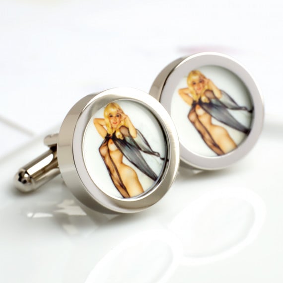 Part of a range of erotic and nude vintage pin up cufflinks. More pinup and nude picture cufflinks available with images from the Victorian's to the 1970s.