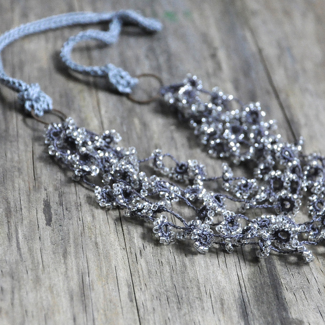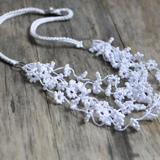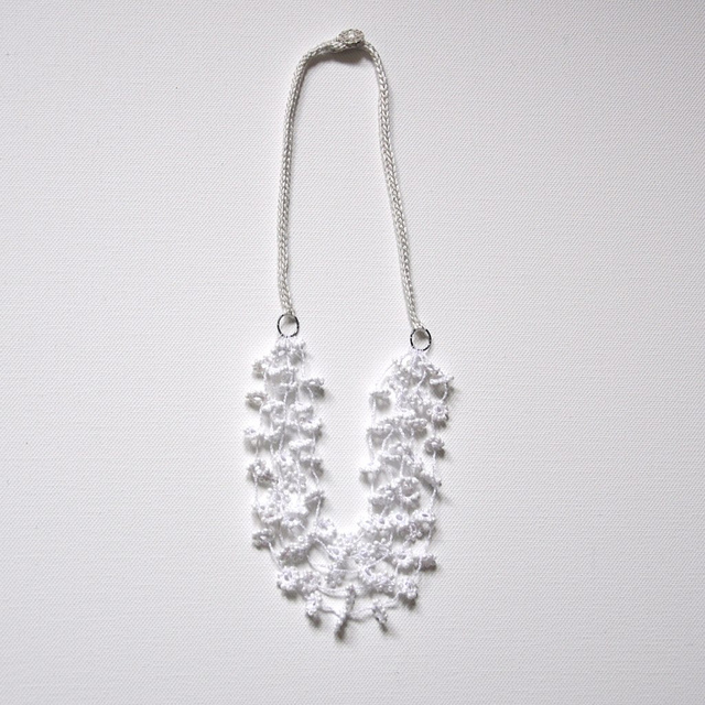 Beautiful and unique, handcrafted flowery wedding necklace, made with silk, cotton, sterling silver and glass beads. Mass of flowers, like a waterfall, dreamy and nostalgic.