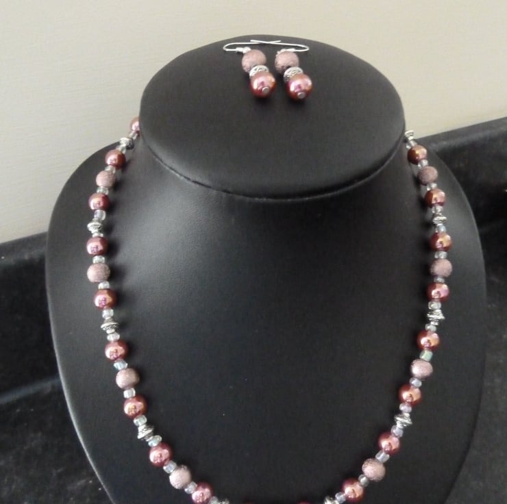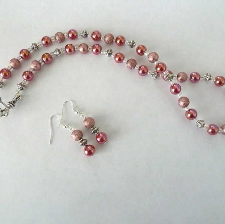 The earrings are silver plated and have been made with the same pink beads as the necklace and also feature tibetan silver spacers.