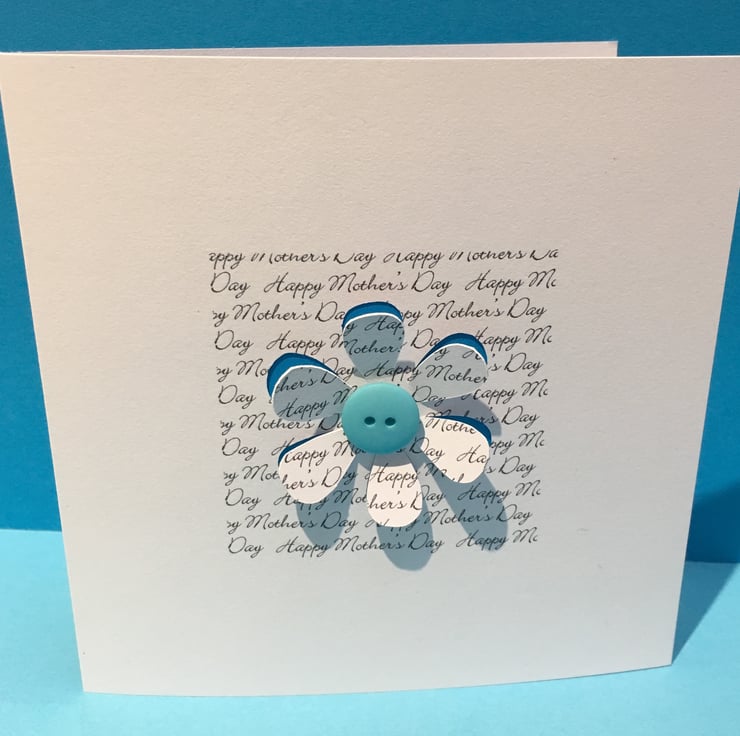 This simply beautiful Mother's Day card has been created by carefully cutting out the individual petals on the flowers to show the colours underneath and finished with a pretty button centre.