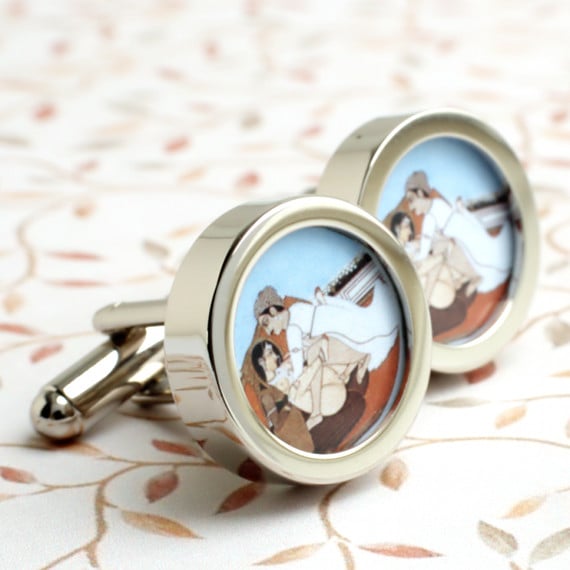 Erotic sensual cufflinks with one of the many positions demonstrated from the Kama Sutra.
