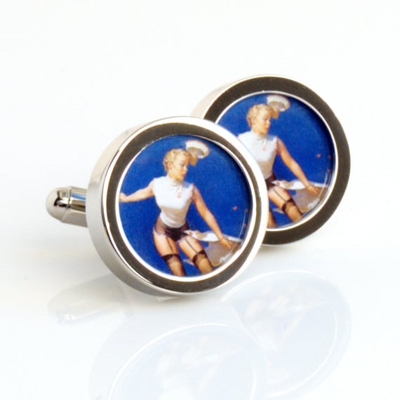 Part of a range of erotic and nude vintage pin up cufflinks. More pinup and nude picture cufflinks available with images from the Victorian's to the 1970s.