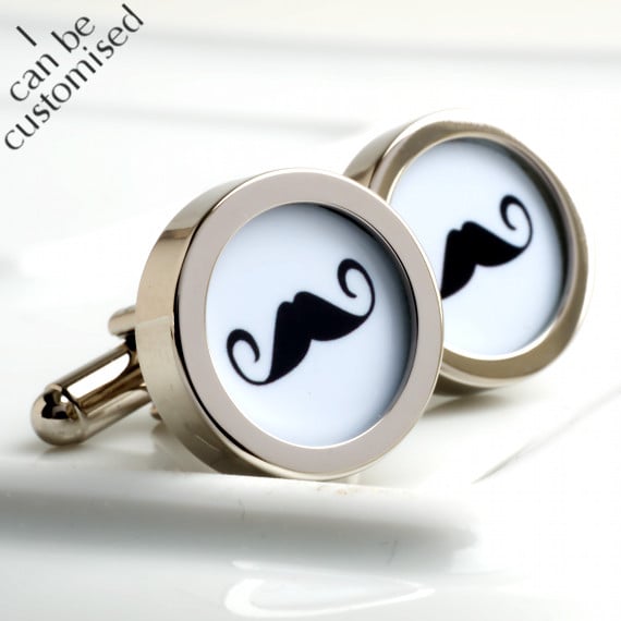 Moustache cufflinks available with either a black background or white background. If you would like these made in a different colour (for instance in your wedding colours) please let me know, I will be only too happy to help.