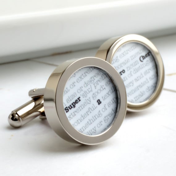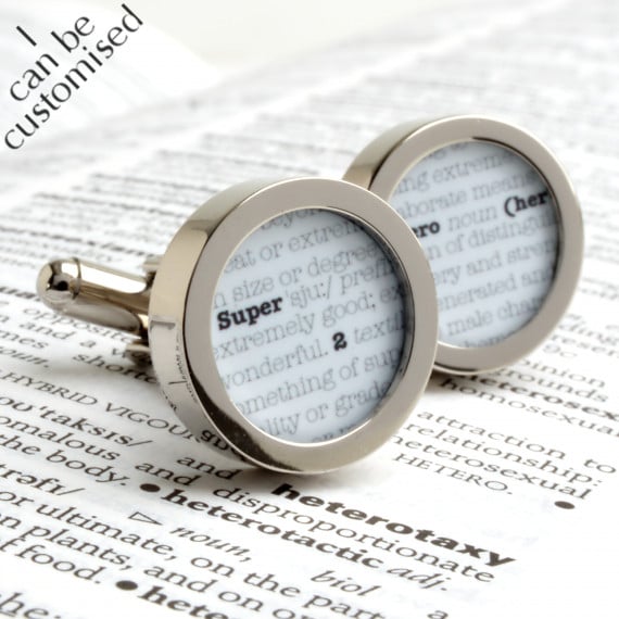 Dictionary cufflinks with the words 'Super' and 'Hero' for the Superhero in your life.