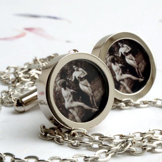 Cuff Links of two naked women indulging in a little bondage fun. This image comes from a Victorian postcard.